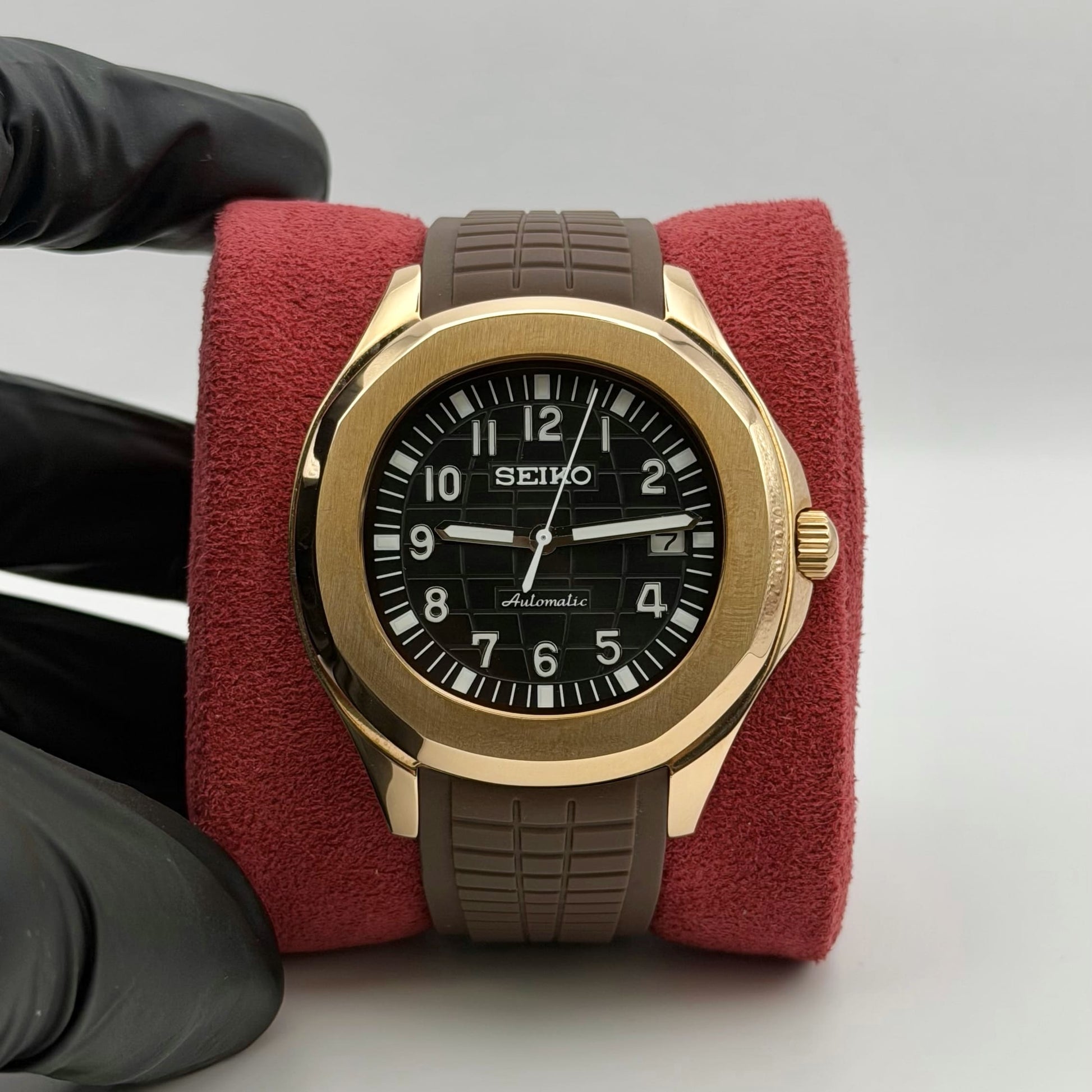 Inspired by the iconic Aquanaut design, and featuring the prestigious Seiko NH35 automatic movement, we present the Seiko Mod Aquanaut. A 41 mm high-end quality watch combining the perfect alliance between excellence and accessibility.