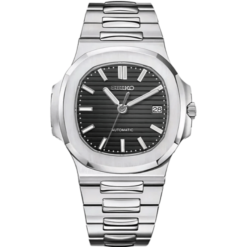 Inspired by the iconic Nautilus design, and featuring the prestigious Seiko NH35 automatic movement, we present the Seiko Mod Nautilus. A 41 mm high-end quality watch combining the perfect alliance between excellence and accessibility.