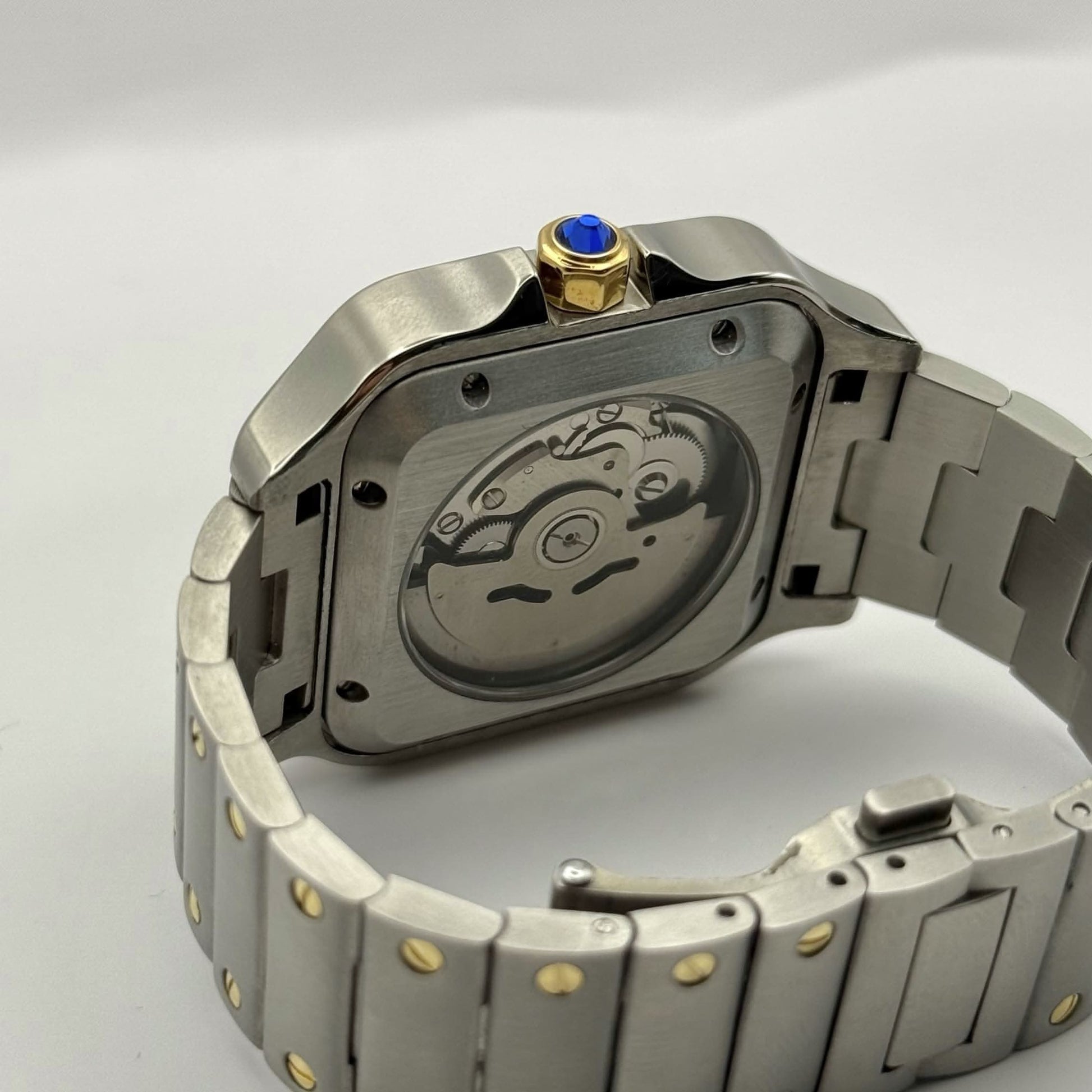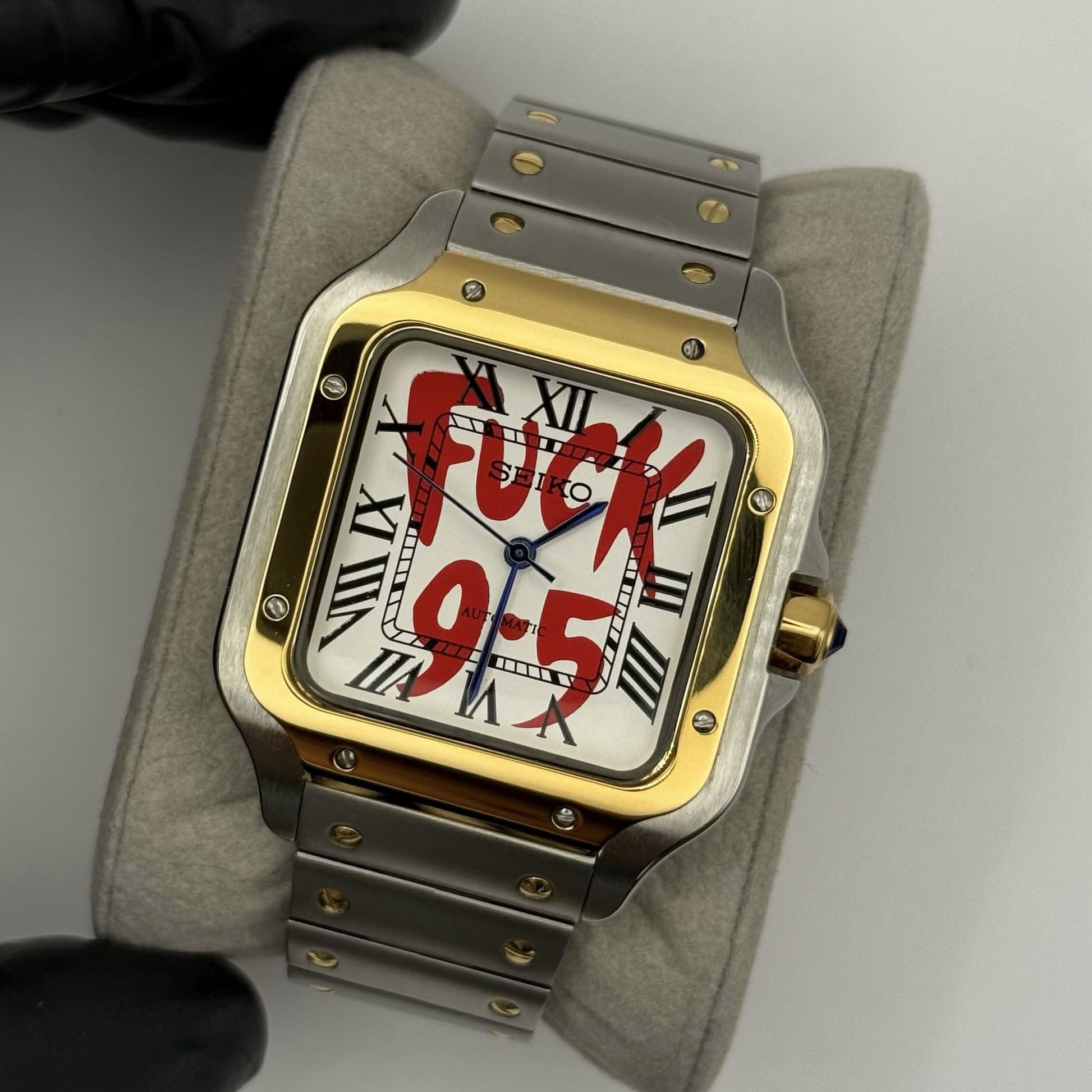 Inspired by the iconic Santos design, and featuring the prestigious Seiko NH35 automatic movement, we present the Seiko Mod Santos. A 38 mm high-end quality watch combining the perfect alliance between excellence and accessibility.